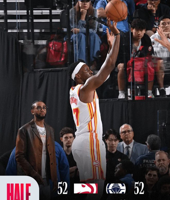 次节回来,小克里斯蒂底角三分投进,邓恩补篮再得手,快船将分差拉开至17分。华莱士大空位三分稳稳命中,克雷伊奇追身三分再投进,一人连中3记三分,老鹰追至6分打停快船。哈登连续跳投不中,杰伦-约翰逊翻身中距离投进,克雷伊奇又命中单节第4记三分,老鹰快速抹平17分分差,反超快船。哈登高难度出手打板命中,随后接过超远三分压哨再投进,目前拿到10分8篮板5助攻。小琼斯身后大帽里萨谢,半场战罢,快船52-52和老鹰战平。
