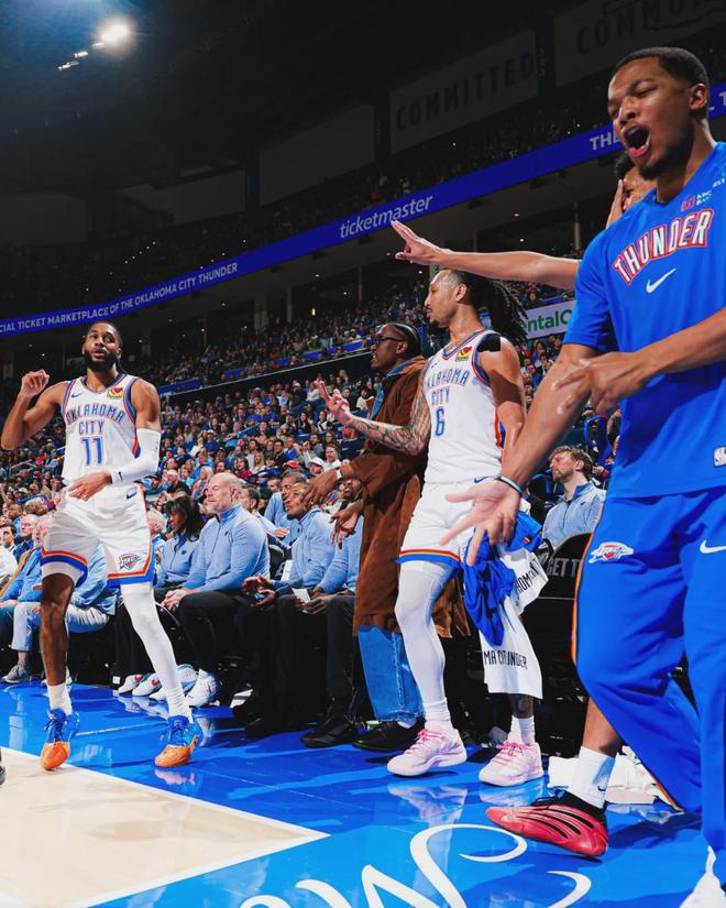 卡鲁索存在感十足,连断东契奇和里夫斯。湖人不但进攻失准,外线防守靠眼神,内线艾顿一点就飞。半场战罢,雷霆70-38领先湖人32分。东契奇13中4拿到11分5板4助,里夫斯7中2仅拿8分2板1助。亚历山大10中6砍下18分4板5助。
